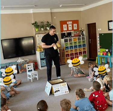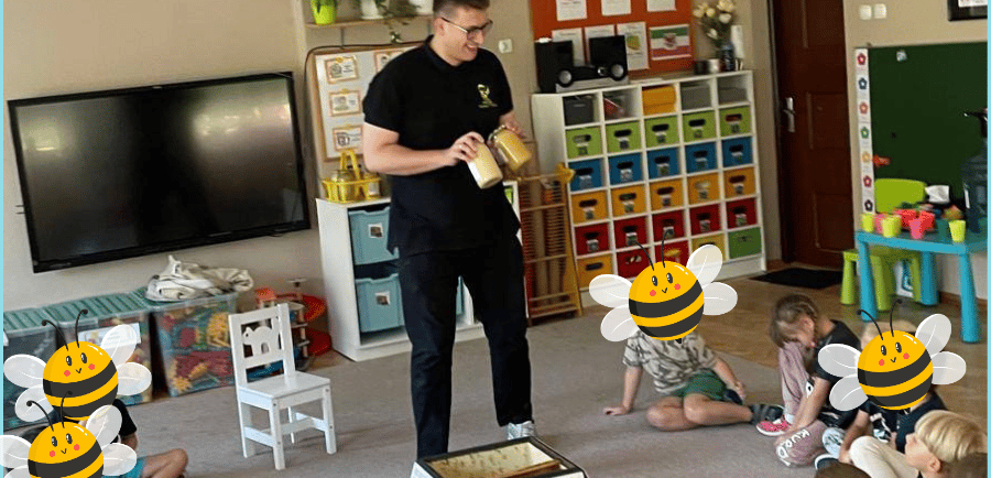 "Dzieci miały też możliwość spróbowania pysznego miodu – jego złoty kolor i słodki smak wywołał uśmiechy na twarzach wszystkich. A to jeszcze nie koniec – już niedługo dzieci z grupy „Słoneczka” będą mogły pomalować ul pana Mateusza – tak, aby pszczoły miały piękny, kolorowy domek."